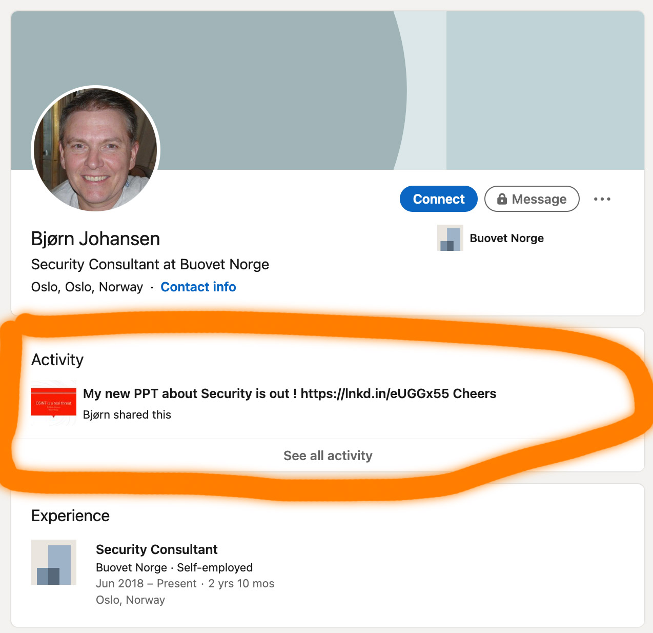 In our quest of finding out more info about him and his Internet trails, let’s find our beloved Bjørn Johansen on LinkedIn as well.