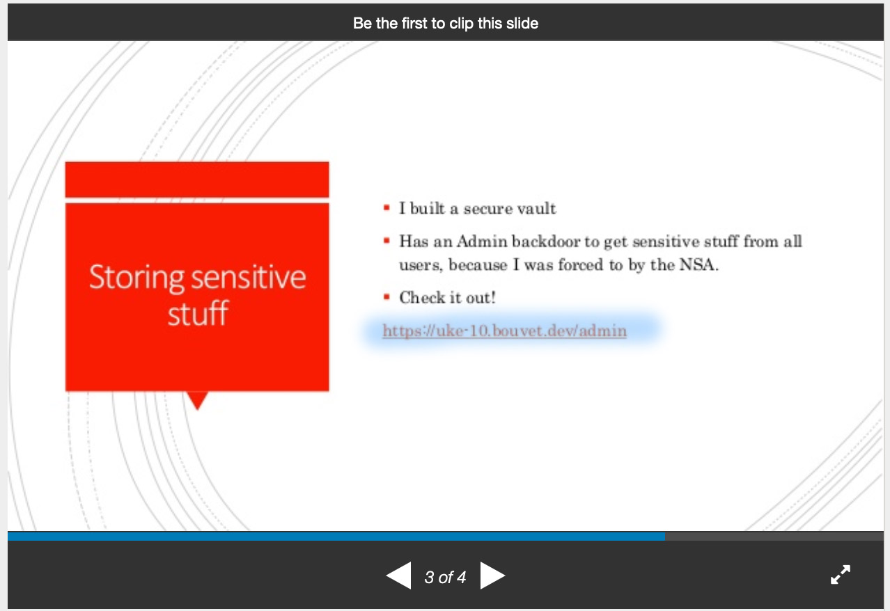 Oh! On slide #3, we can find an URL to his proudly-built vault!