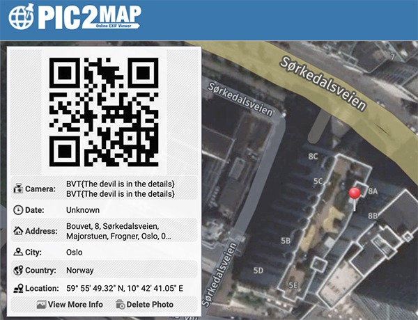 As another fun little easter egg that some people found, we had spoofed the coordinates of the image to the Bouvet Oslo office address, Sørkedalsveien 8.