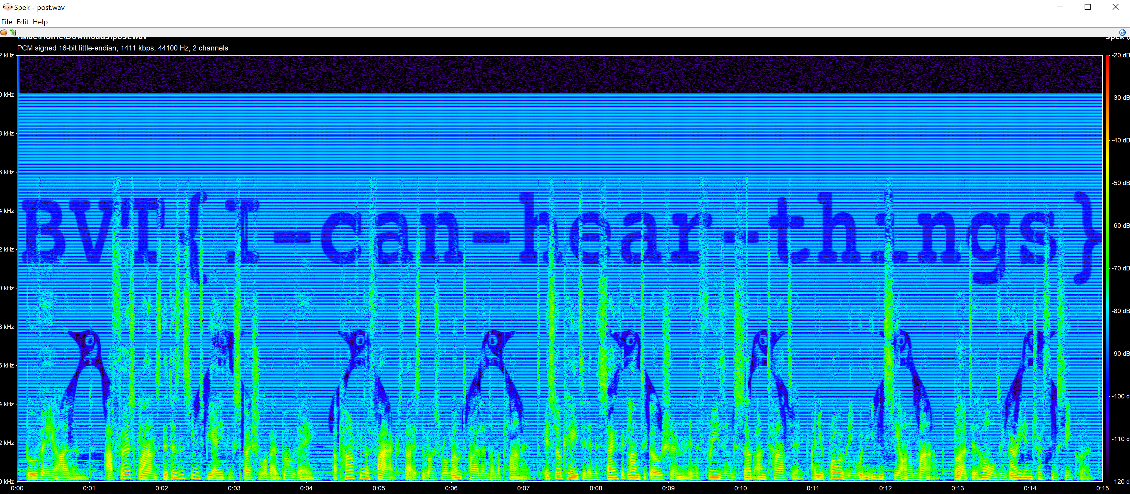 As the image was generated using 20kHz as a cap, and that was the hint as well, we should look for something between 0 and 20 kHz.